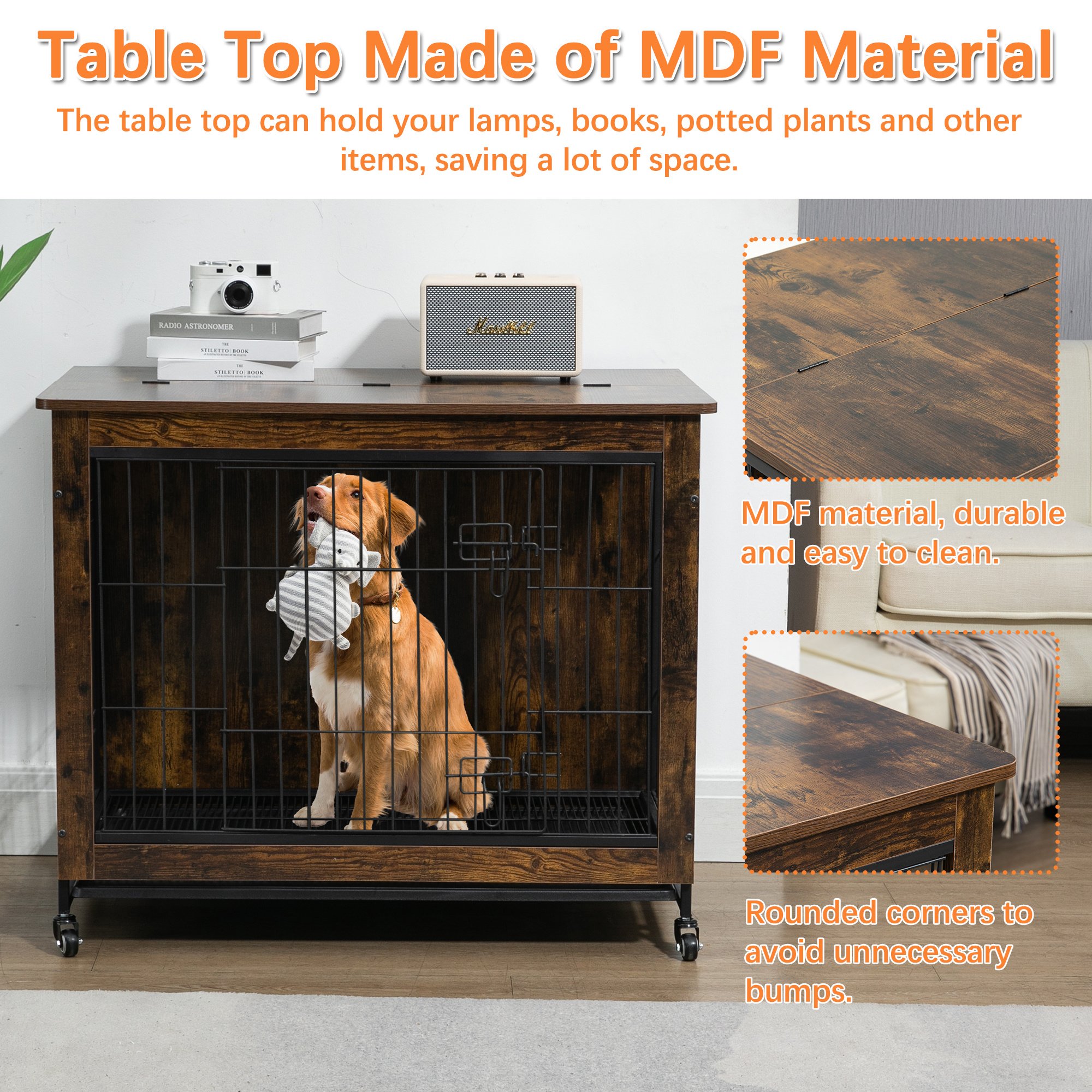Dimension38.3"L x 23.4"W x 32"HColorVintageProduct Weight64LbsMaterialMDF . Iron WirePackage Includes1 x dog crate . 1 x Instruction