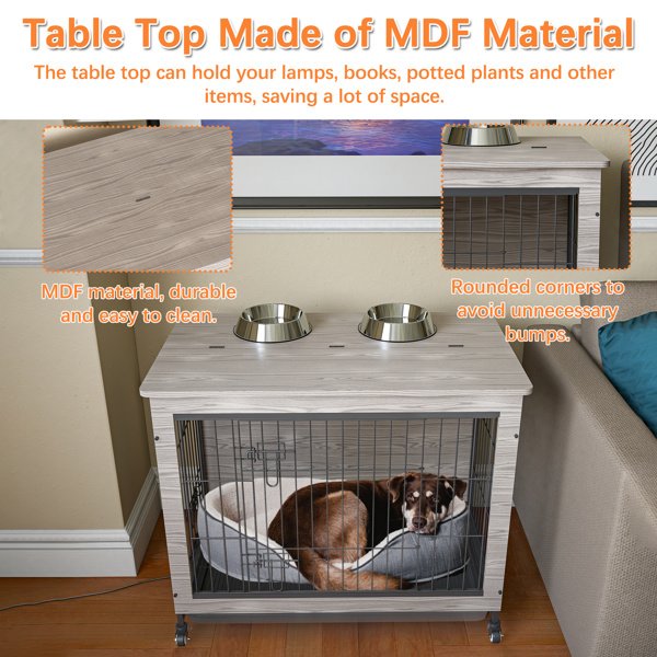 38 Inch Heavy-Duty Gray Dog Crate Furniture