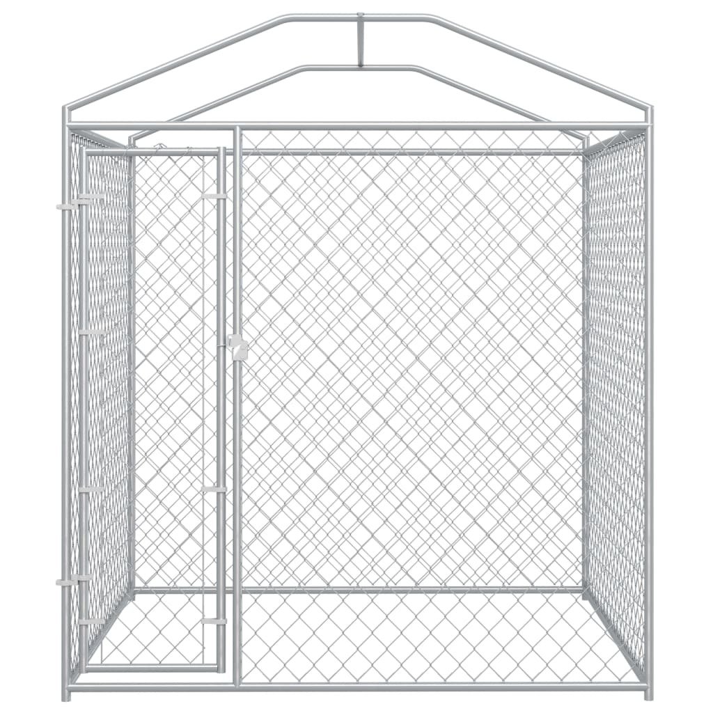The dog kennel is made of galvanized steel. The included top canopy, made of 100% polyethylene, is fire-resistant and UV protected, providing protection from sun, rain, snow and other weather conditions.