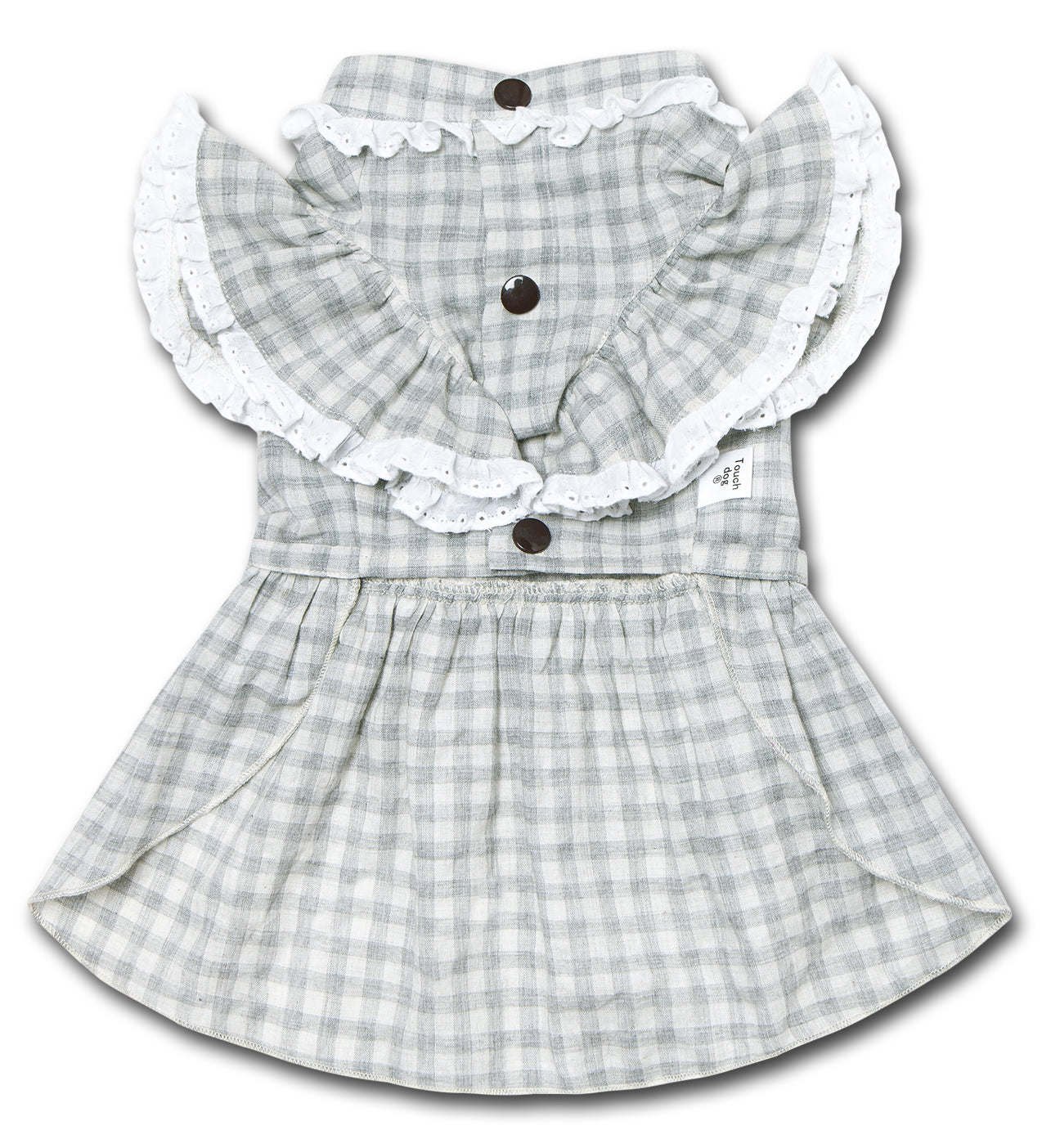 The Touchdog 'I love Poochi' Classical Fashion Designer Plaid Dog Dress is an emblematic-of-its-age vintage designer dog dress that is eloquently pieced together. This beautifully crafted dress features retro ruffles along the sleeves and collar areas with accented buttoned trims and a transparent tablecloth stitched layering by the back-side with a trendy adjustable bow for a custom fit around the chest or waist areas. Howl Grand is this masterpiece! Available in Multiple Sizes and Colors.