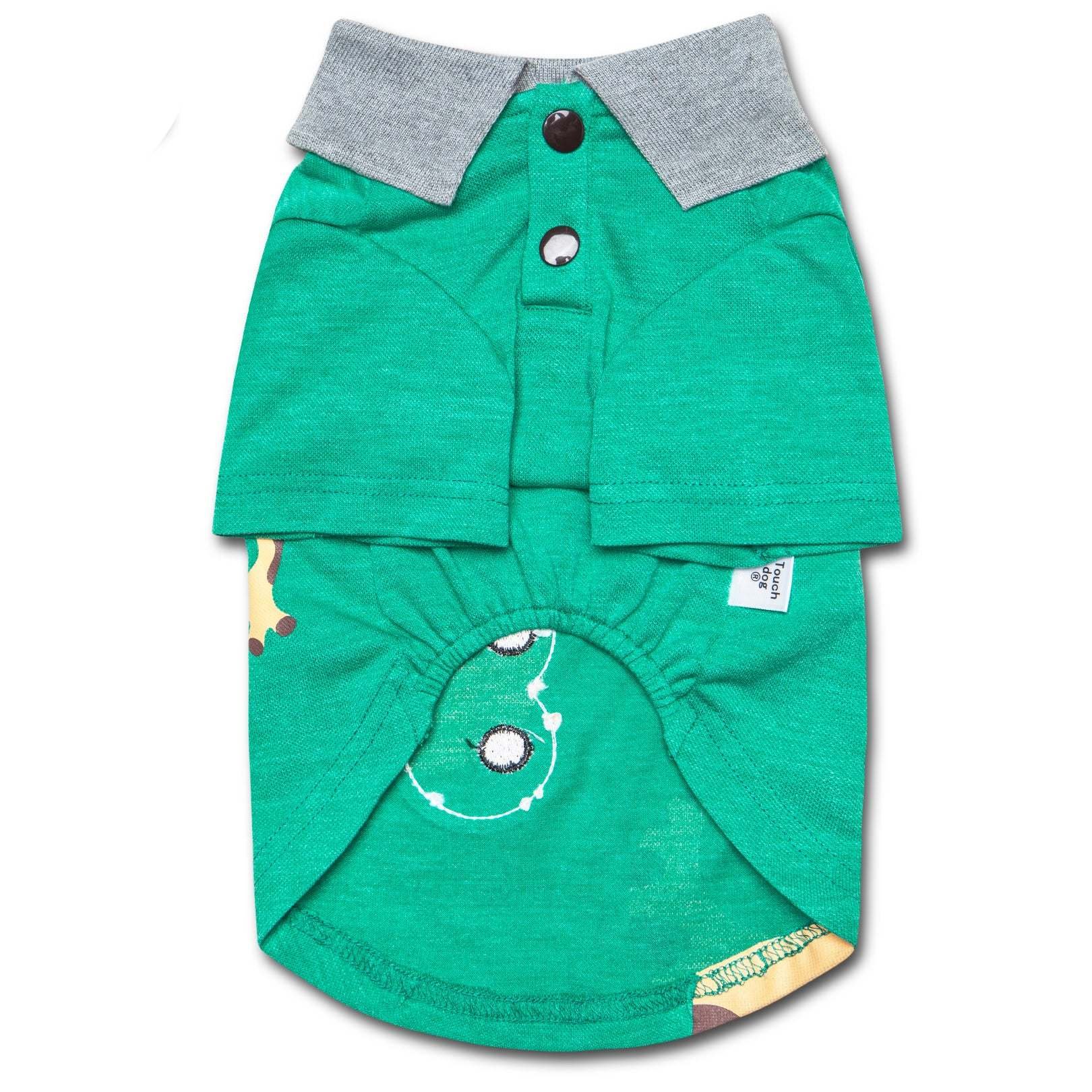 The Touchdog 'Arubark' Caribbean Style Dog Polo T-Shirt is inspired by the fun and tropical carribean lifestyle. Features a creative and magnificent Lizard or Gecko-like print along the backside with a fun and creative embroidered patch by the printed eye graphics. Completed with a nice and clean pleated collar along the backside. Composed of a one-piece fabric that is breathable with slight elastic stitching by the belly area for a tailored fit. Available in Multiple Sizes and Colors.