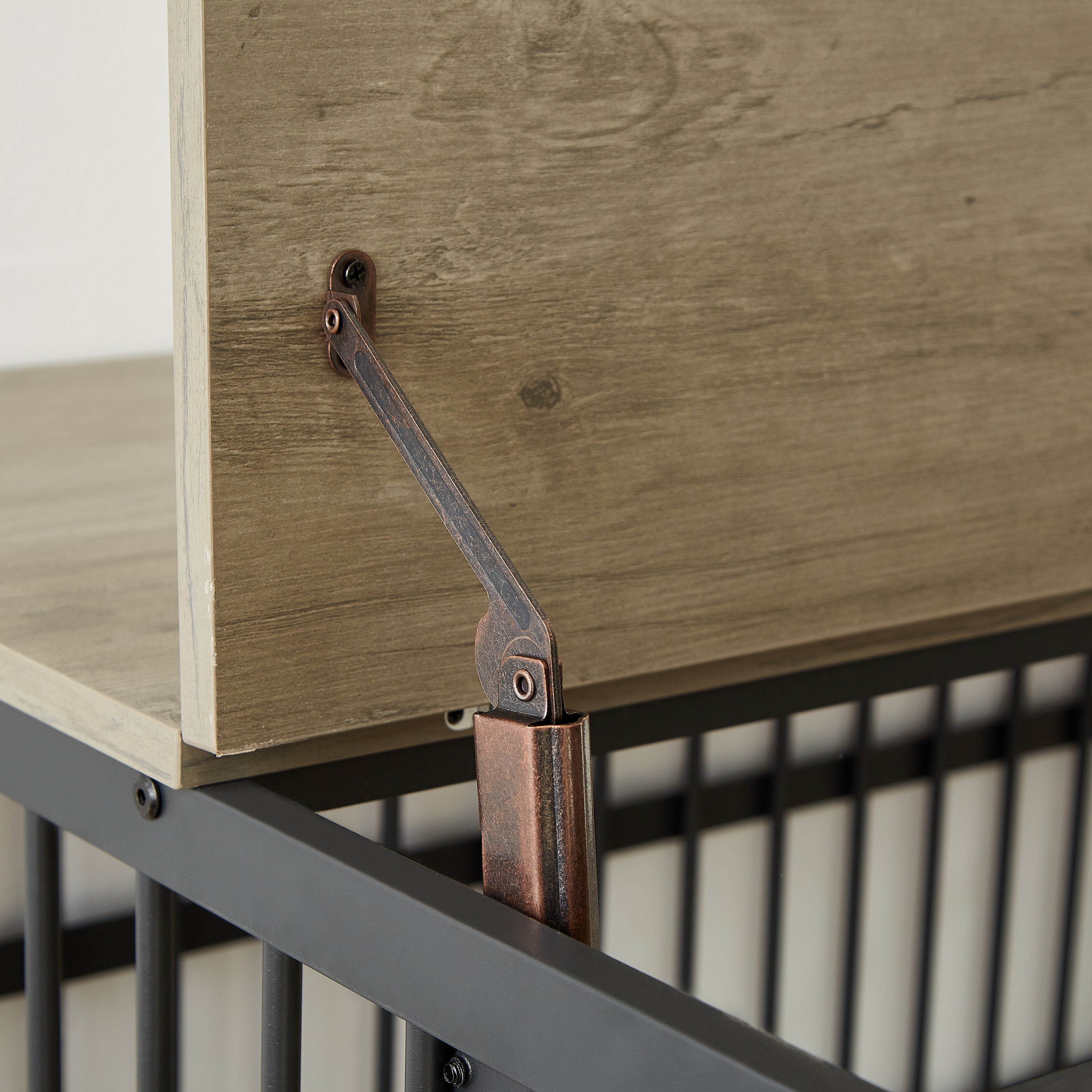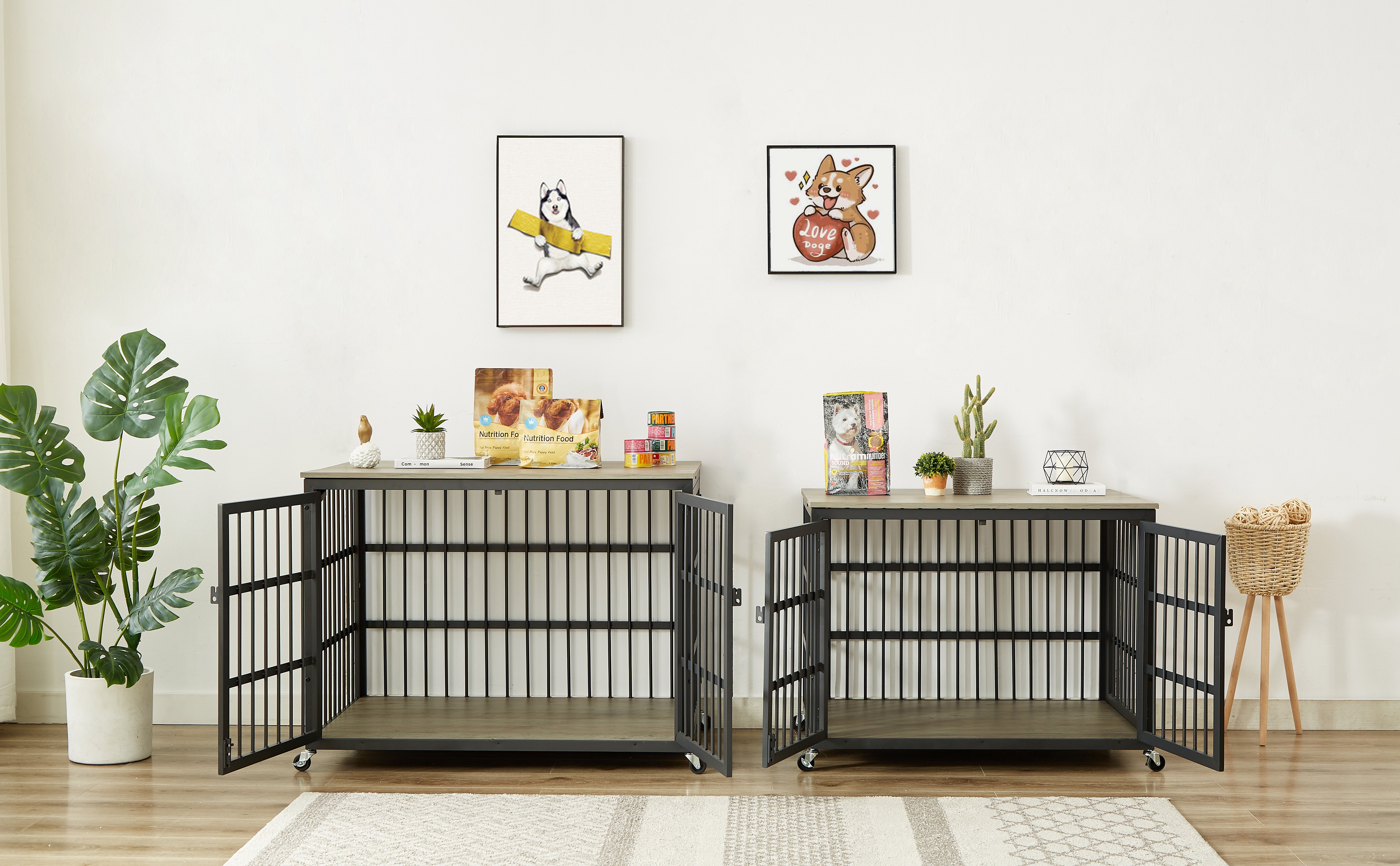 Product NameFurniture style dog crate wrought iron frame door with side openings, Grey, 38.4''W x 27.7''D x 30.2''H.