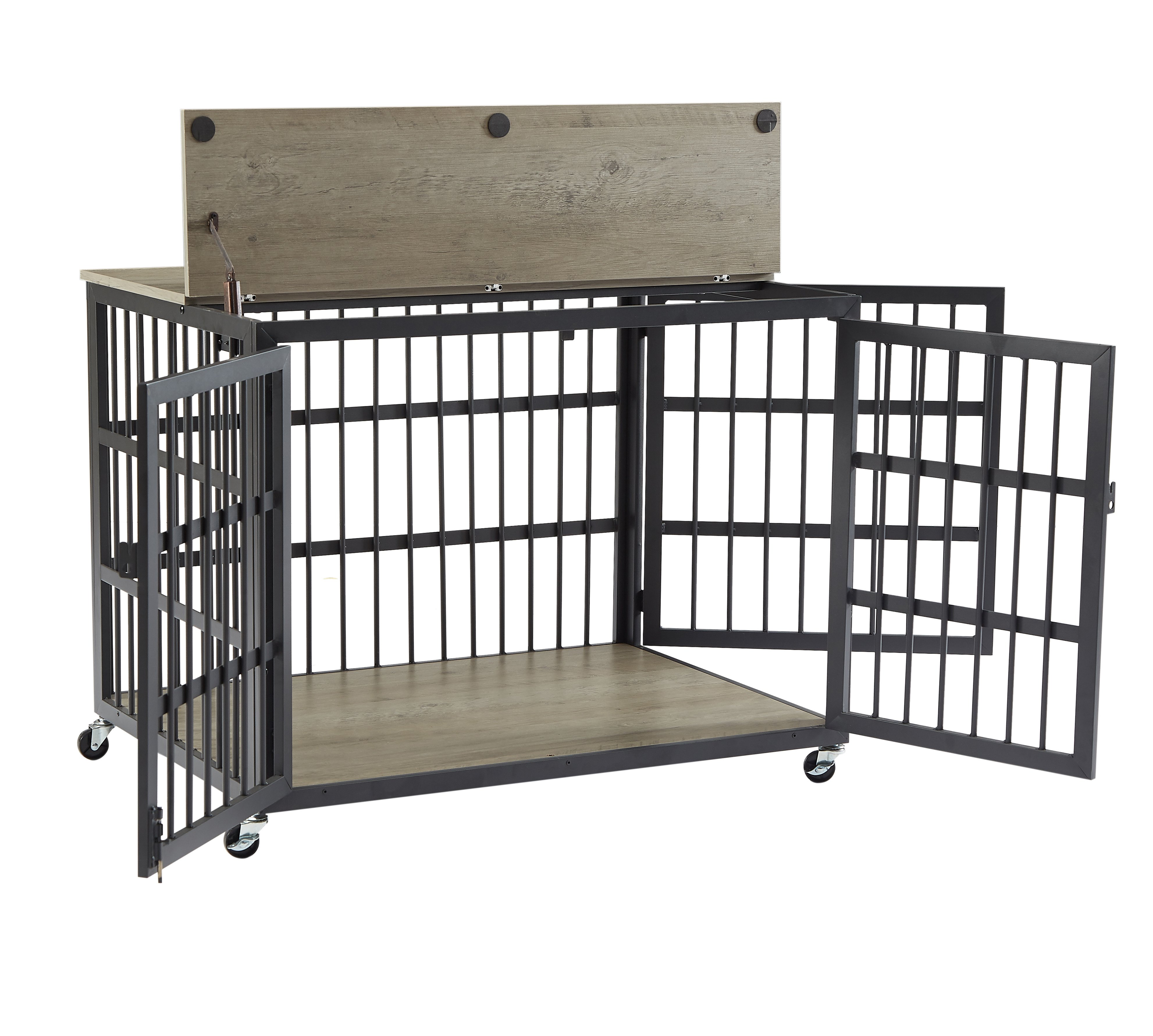Home > Furniture style dog crate wrought iron frame door with side openings, Grey, 38.4''W x 27.7''D x 30.2''H.