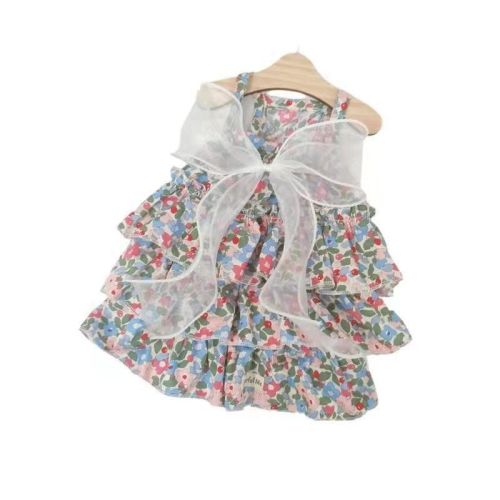 Spring And Summer Dog Clothes Cat Clothing Pet Cotton Floral Slip Dress Mesh Skirt Dress